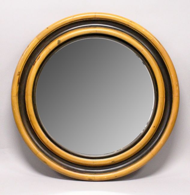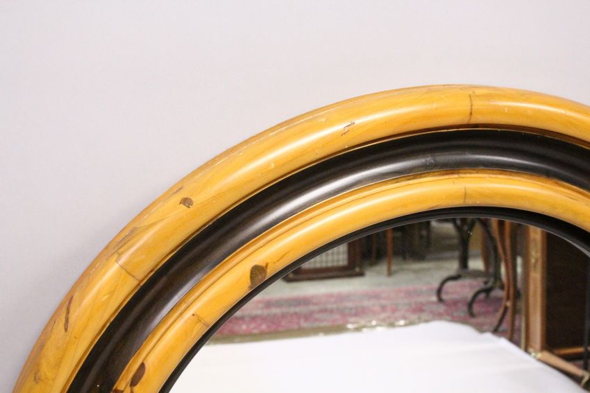 A GOOD LARGE 20TH CENTURY CIRCULAR STAINED PINE MIRROR, with moulded frame.