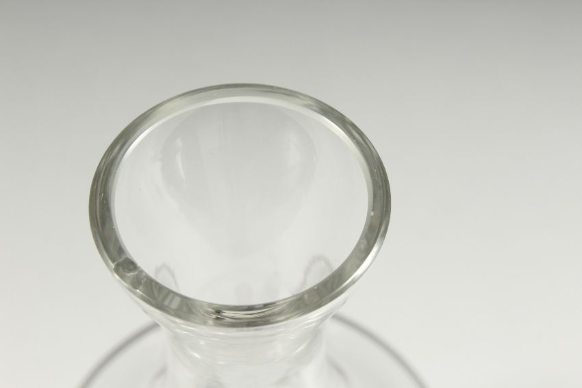A GOOD ROSENTHAL GLASS DECANTER AND STOPPER with seal. 26cm tall