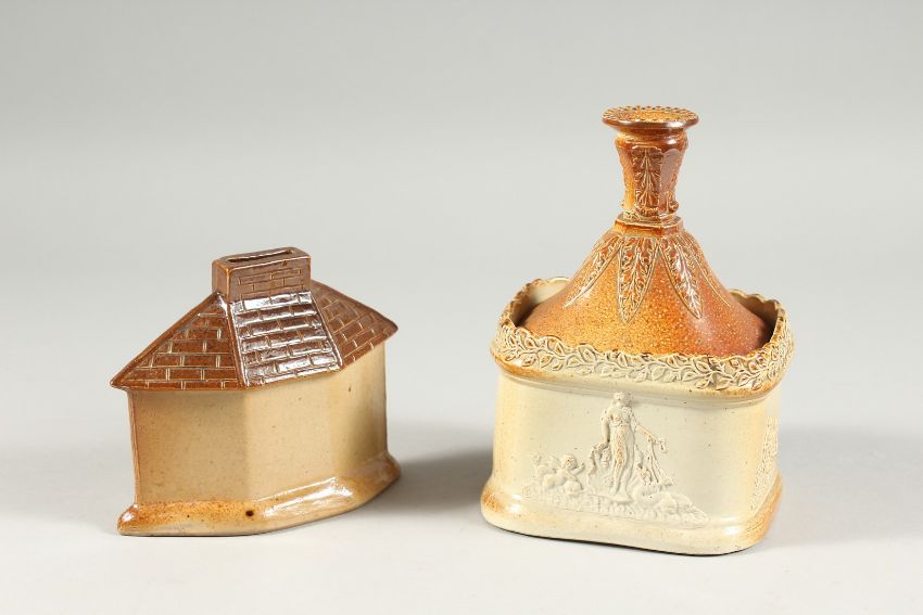 A SALTGLAZE TOBACCO POT, COVER AND LID.