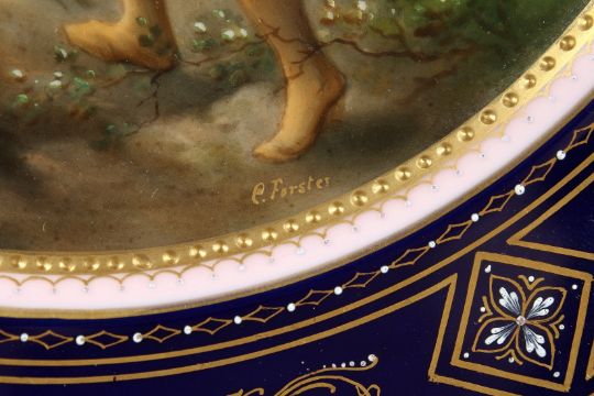 A GOOD VIENNA CIRCULAR PLATE, blue and gilt, the centre portrait 'Des Yarlicht'