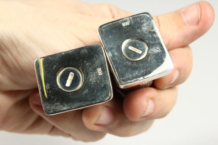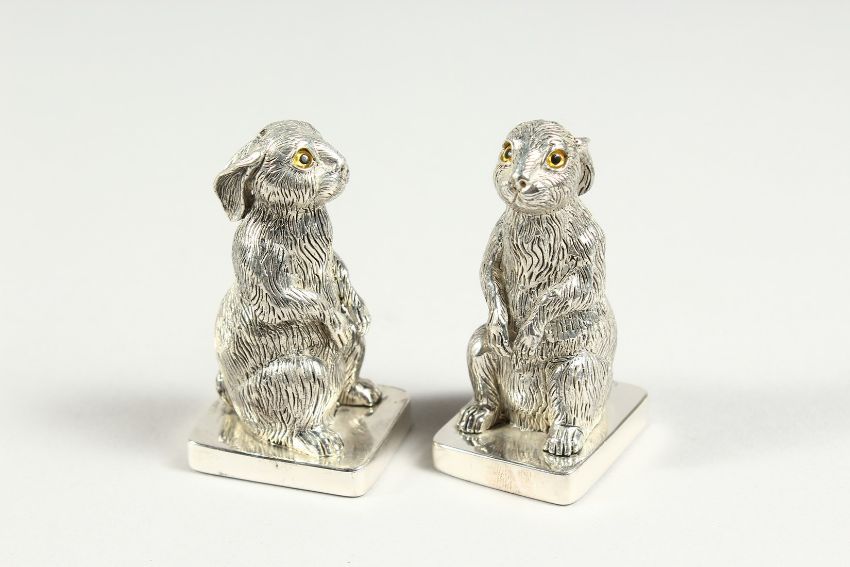 A PAIR OF .800 RABBIT SALT AND PEPPERS