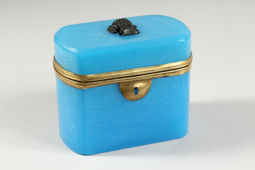 A 19TH CENTURY FRENCH BLUE GLASS BOX.