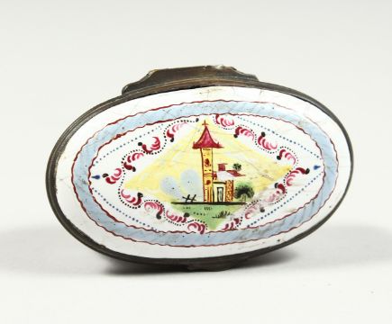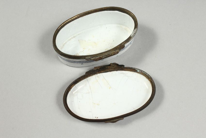 AN ENAMEL OVAL SNUFF BOX