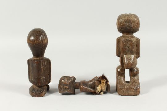 THREE ANCIENT TRIBAL CARVED WOOD DOLLS