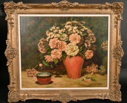E. Isaby, Early 20th century, A still life of flowers and a bowl, oil on canvas, signed, 20" x 24".