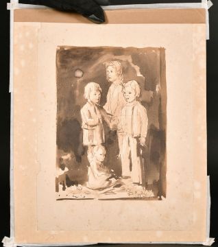 Ambrose McEvoy, A.R.A (1877-1927) British, Study of a group of children (in the Manner of Augustus John), sepia inks with wash, signed l.r. 'McEvoy', 12" x 9".