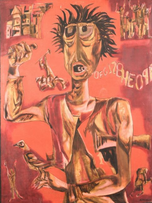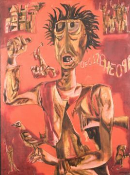 D. Doraiswamy, 20th century, Indian, A semi-abstract scene of an agitated figure, oil on canvas, signed, 48" x 36", (unframed).