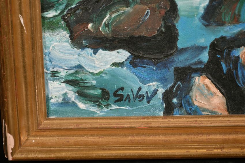 Sava Savov (20th century) A rocky coastal scene, oil on canvas, signed 21.25" x 22.5".