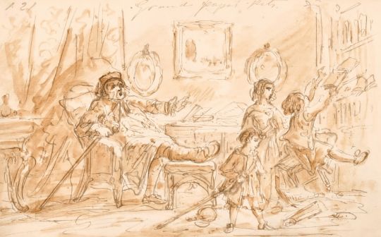 Circle of John Leech, Figures gathered on a beach, ink and wash, with another humorous sketch, probably by the same hand, 4" x 6.25", (2).