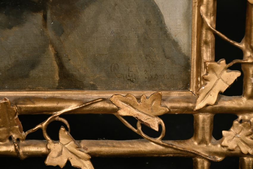 19th century Italian school, A head study of a young child, oil on canvas, indistinctly signed and inscribed 'Roma', 13" x 11", in a fine carved wood frame.