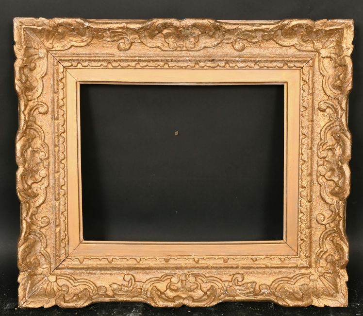 An early 20th century carved wood frame, rebate size 10.5" x 14", 17 x 35 cm, (slip slightly warped).