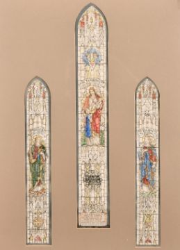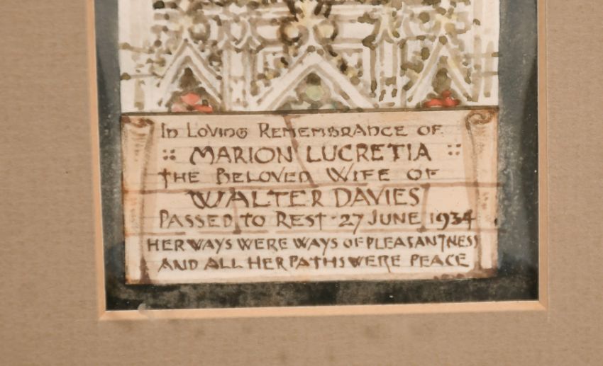 English School, circa 1934, A design for a stained-glass window, watercolour, inscribed 'In Loving Remembrance of Marion Lucretia', 19" x 2.75".