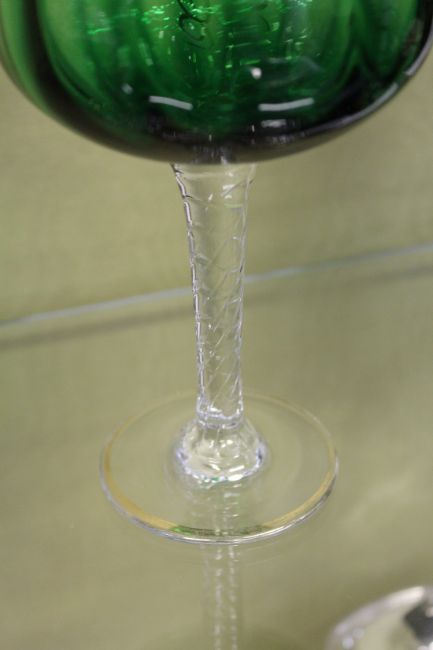 A painted green Murano glass goblet and a decorative glass bowl, possibly Caithness.