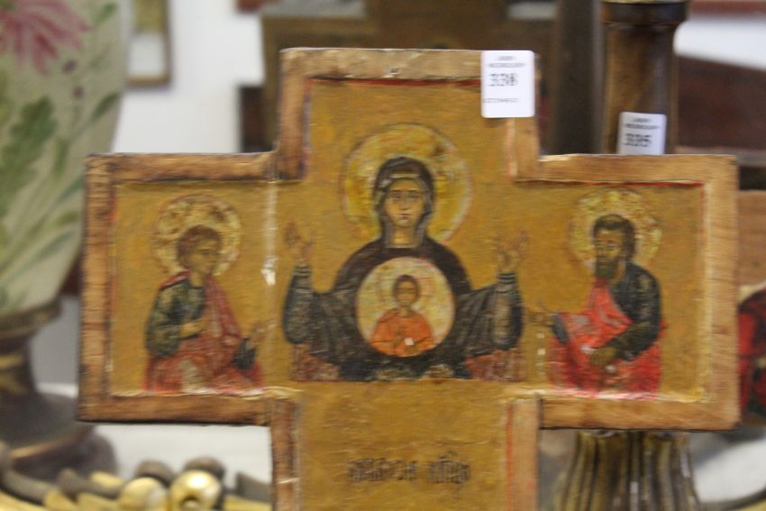 A large decorative gilded and painted Russian Orthodox Crucifix.