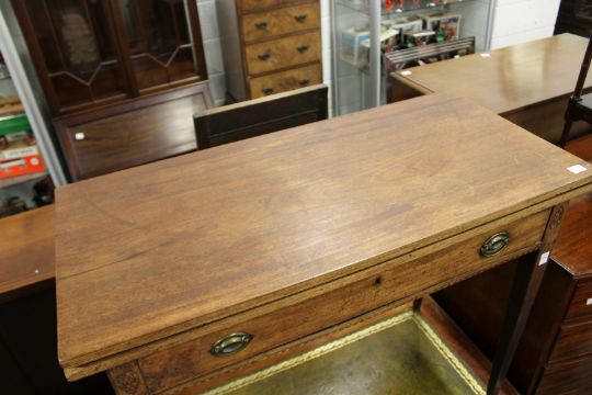 A 19th century mahogany rectangular tea table with a single frieze drawer on tapering square legs.