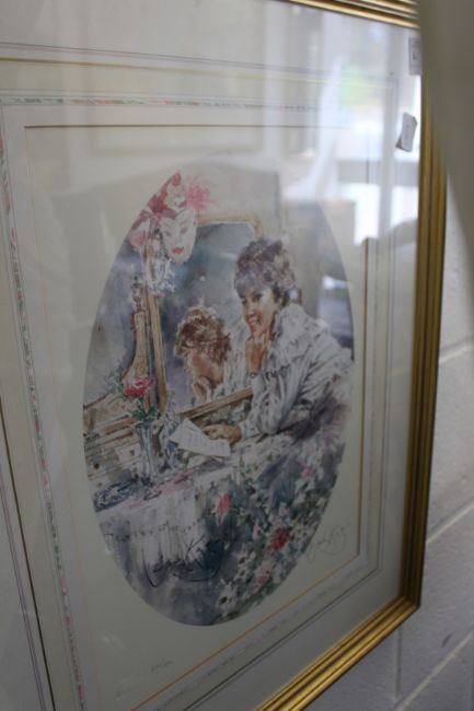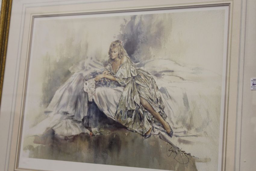 Gordon King, a study of a young girl holding a rose, limited edition colour print together with three others similar.
