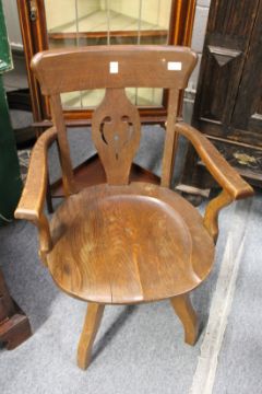 An Edwardian oak swivel armchair.