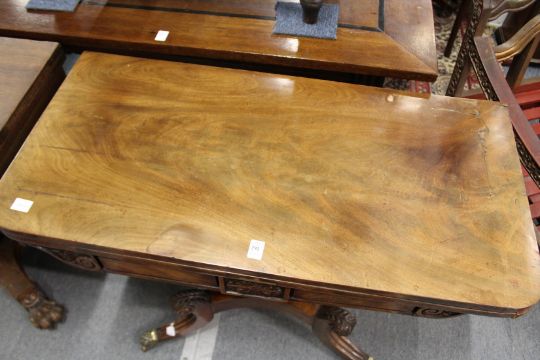 A 19th century mahogany D-shaped fold over card table.