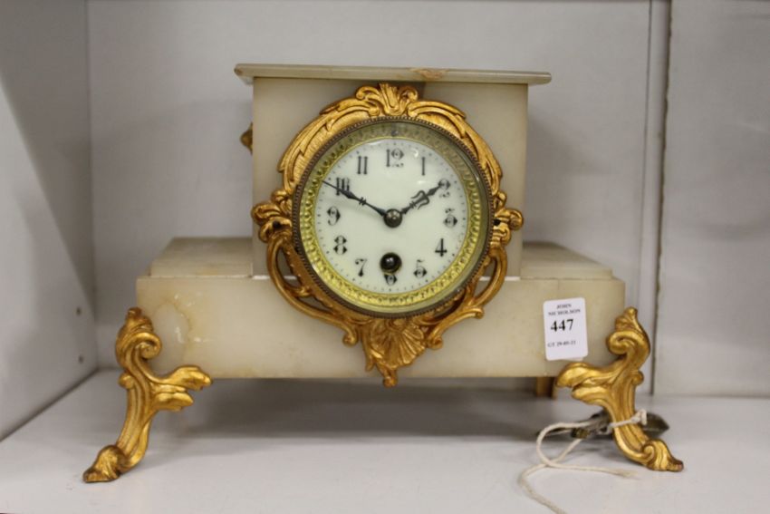 An alabaster mantle clock.