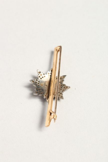 A DIAMOND AND ENAMEL BAR BROOCH 'TRIA JUNTCA UNO'.