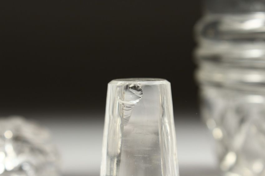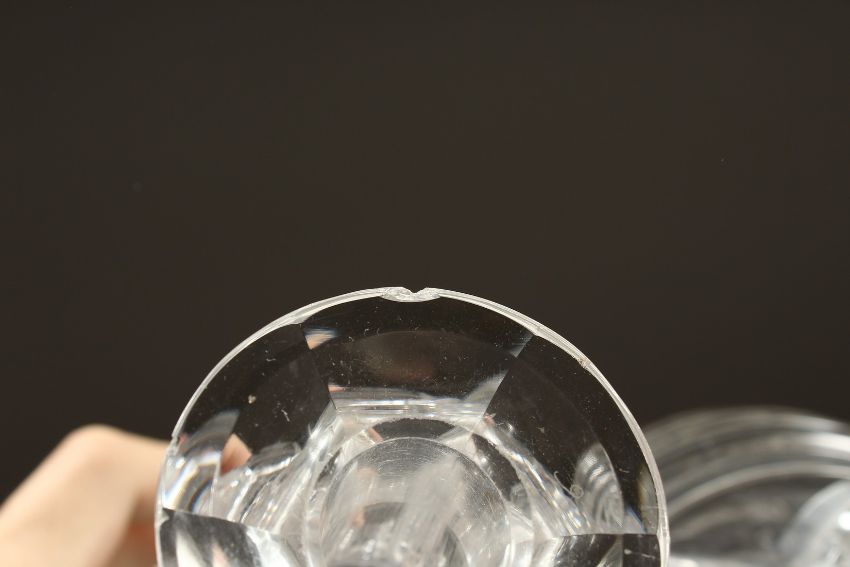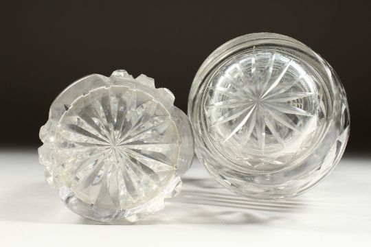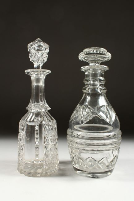 TWO CUT GLASS DECANTERS AND STOPPERS
