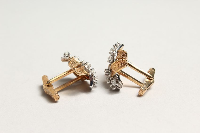 A PAIR OF GOLD DIAMOND SET CUFF LINKS each with 8 diamonds