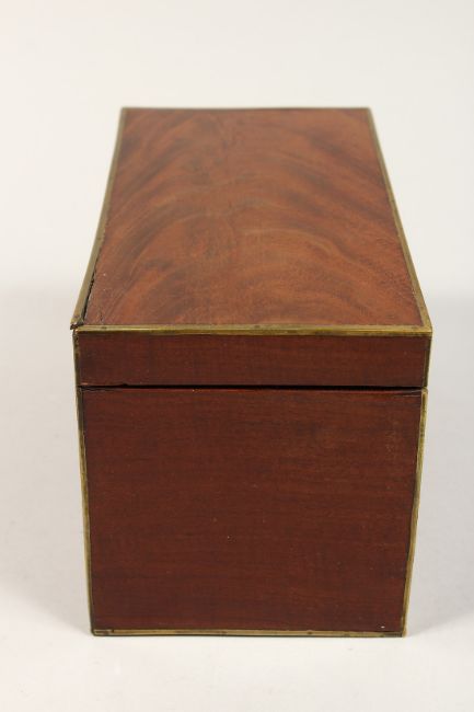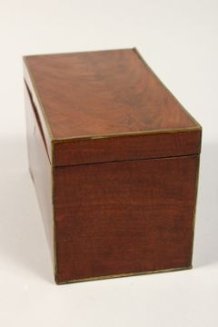 A REGENCY MAHOGANY TWO DIVISION TEA CADDY with brass stringing.