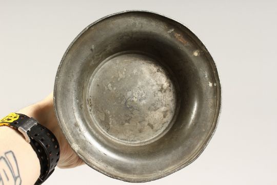 A SCOTTISH PEWTER LIDDED TANKARD