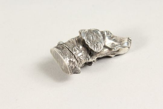 A HEAVY SILVER DOG'S HEAD VESTA