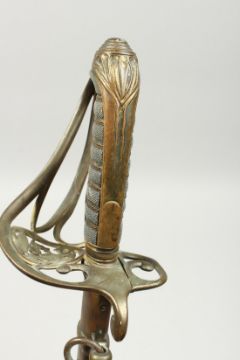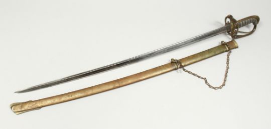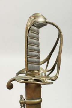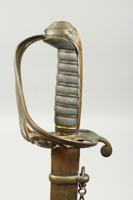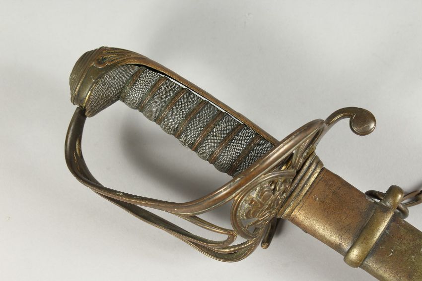 A GOOD GEORGE IV NAVAL SWORD with shagreen handle, plain blade and brown sheath.
