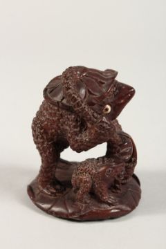 A JAPANESE CARVED GROUP OF TOADS