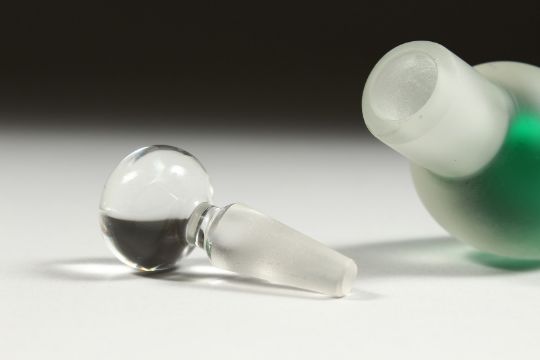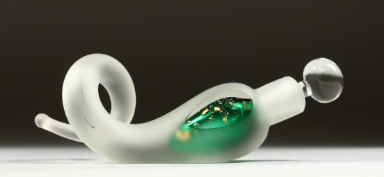 A FROSTED GLASS SCENT BOTTLE, signed.