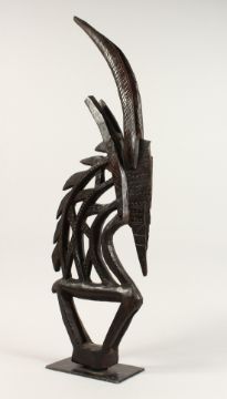 A CARVED AND PIERCED WOODEN GOAT'S HEAD/ ANTELOPE ORNAMENT
