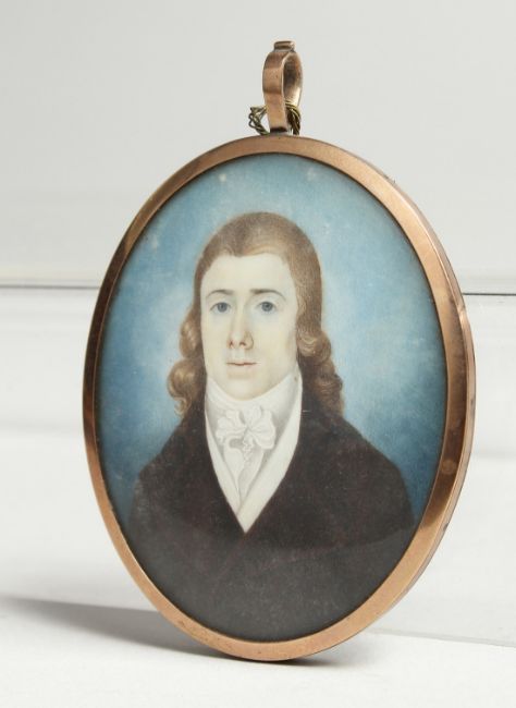 AN GEORGIAN OVAL MINIATURE OF A YOUNG MAN, the reverse with plated hair.