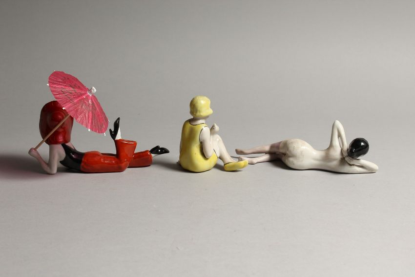 THREE PORCELAIN FIGURES OF ART DECO DESIGN 'SWIMMERS'.