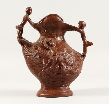 A BROWN POTTERY STONEWARE JUG