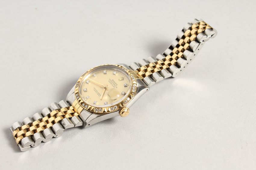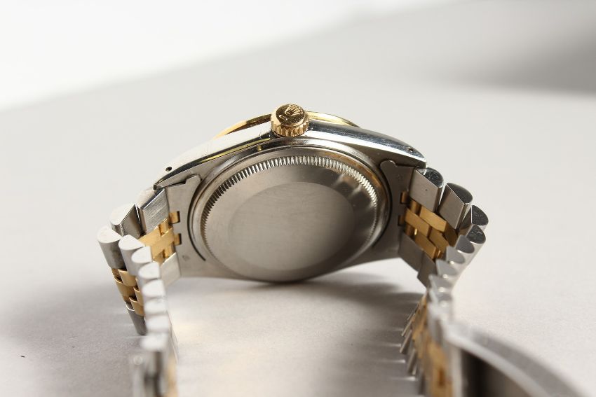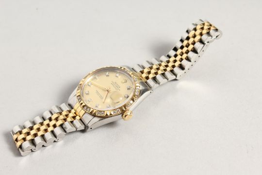 A ROLEX OYSTER PERPETUAL TWO COLOUR WRIST WATCH.