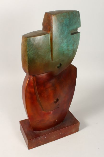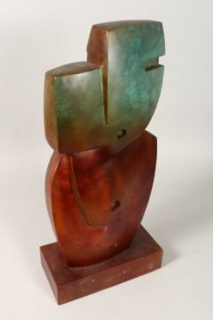 AN ABSTRACT BRONZE SCULPTURE. 25 ins tall