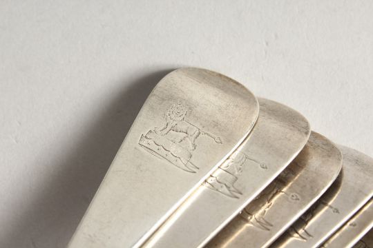 A SET OF SIX GEORGE IV YORK SILVER TABLE SPOONS.