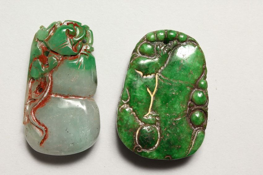 TWO CARVED STONE PENDANTS