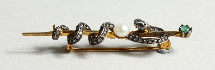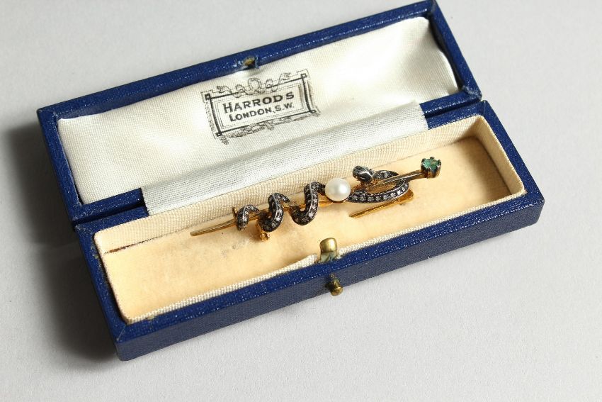 A DIAMOND AND PEARL SNAKE TIE PIN (Harrods)