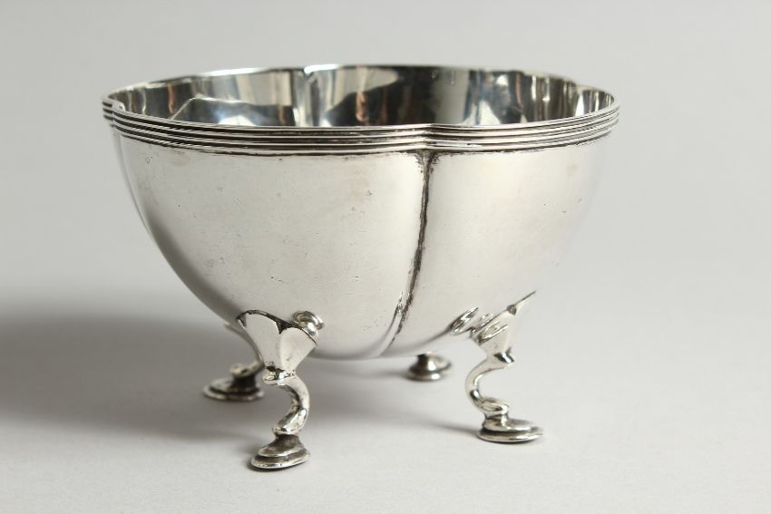 AN EDWARD VII QUATREFOIL SUGAR BASIN on four pad feet.