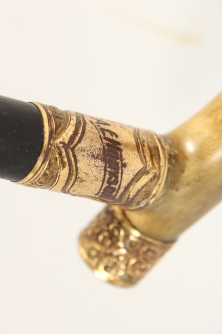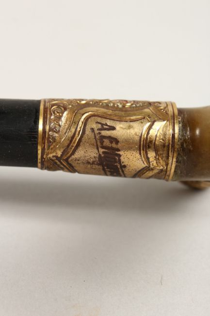 A RHINO HANDLE WALKING STICK with tablet 'R.E. HODGSON'