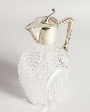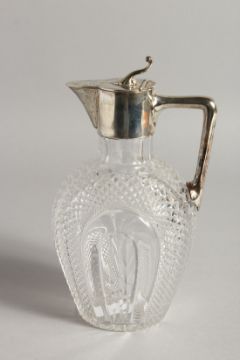A SILVER MOUNTED VICTORIAN CLARET JUG.
