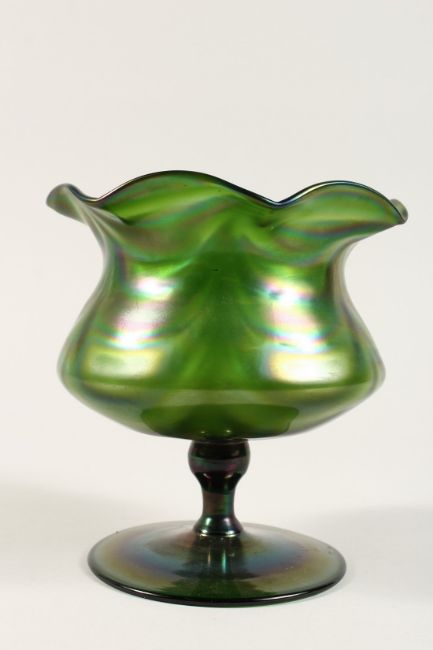 A GOOD LOETZ CIRCULAR PEDESTAL BOWL with woven rim on a circular pedestal.
