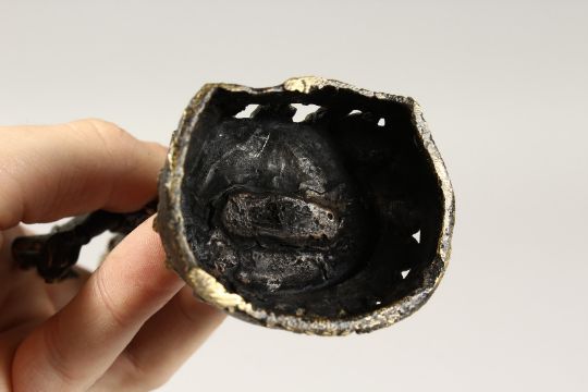 A TIBETIAN BRONZE MULTI HEAD GOLD FIGURE