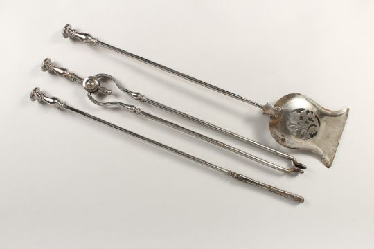 A SET OF GEORGIAN STEEL FIRE IRONS