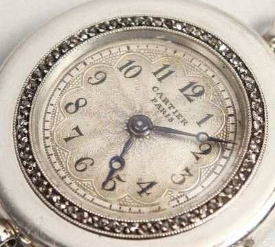 A LADIES CARTIER PLATINUM DIAMOND SET COCKTAIL WATCH