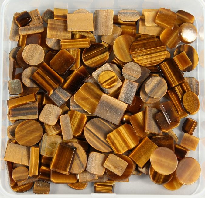 A BOX OF TIGERS EYE LOOSE STONES