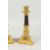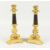 A SUPERB PAIR OF EMPIRE BRONZE AND GILT BRONZE CANDLESTICKS on claw feet with triangular bases.